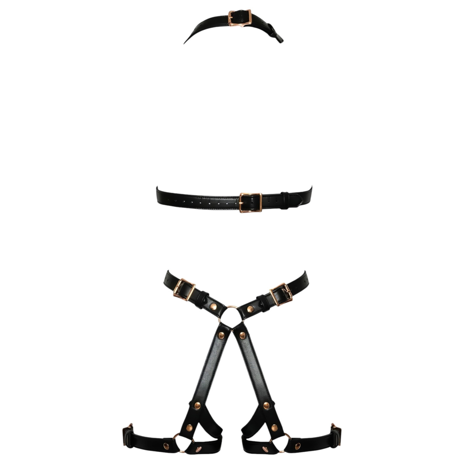 • 1 schwarzer Körperharness mit Schnallen in Roségold