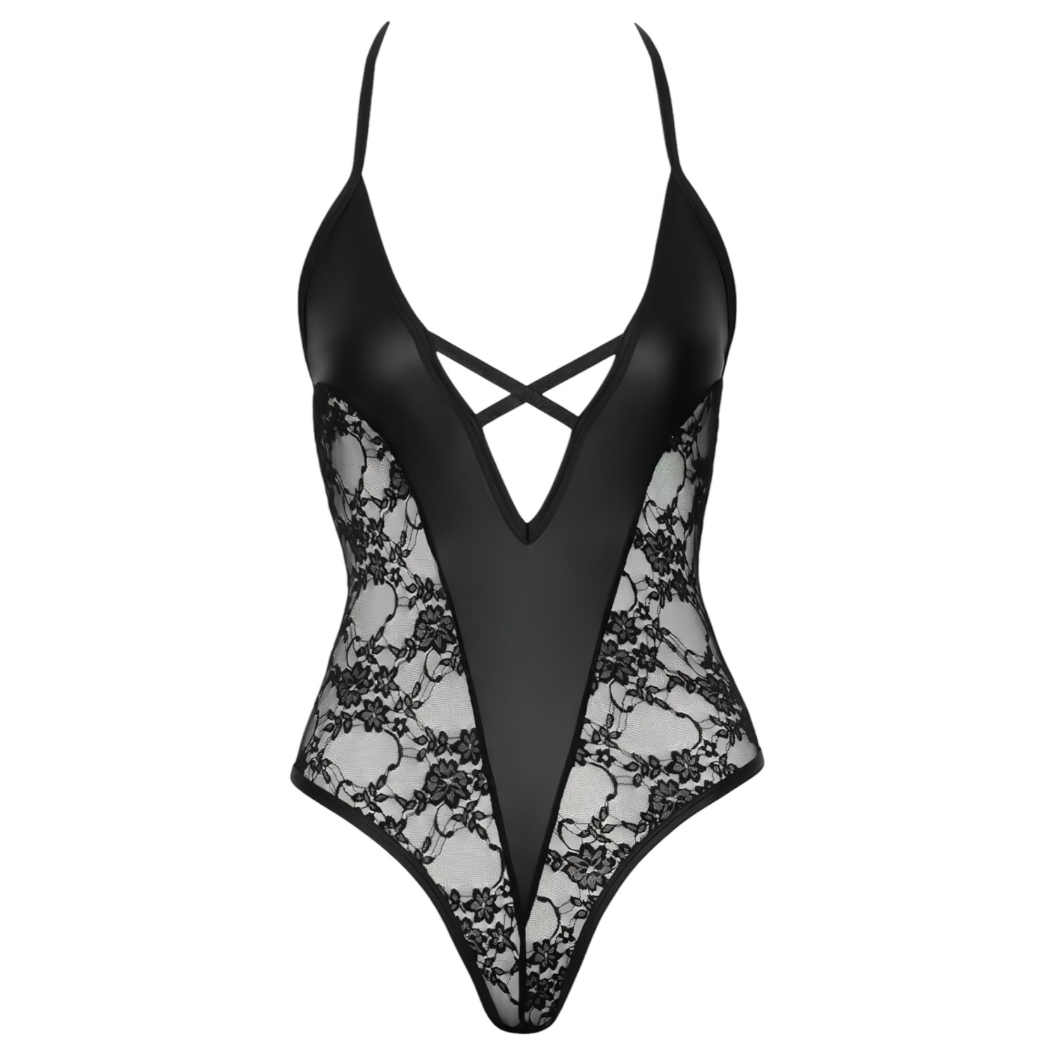 Cottelli Party - Blumenmuster-Body (schwarz) - XL