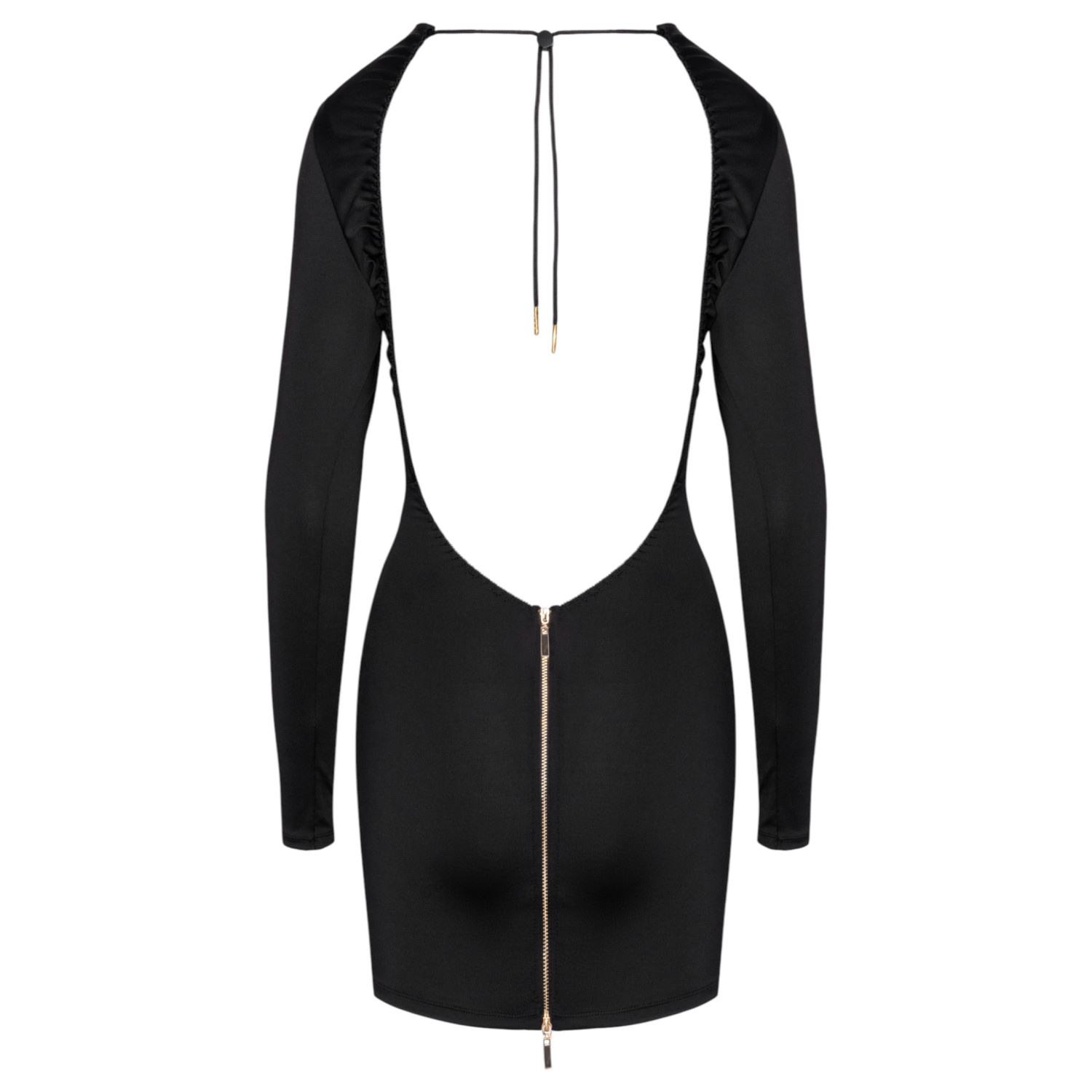 • Details: Großer Rückenausschnitt, goldfarbener zweiseitiger Reißverschluss, verstellbares Nackenbindeband