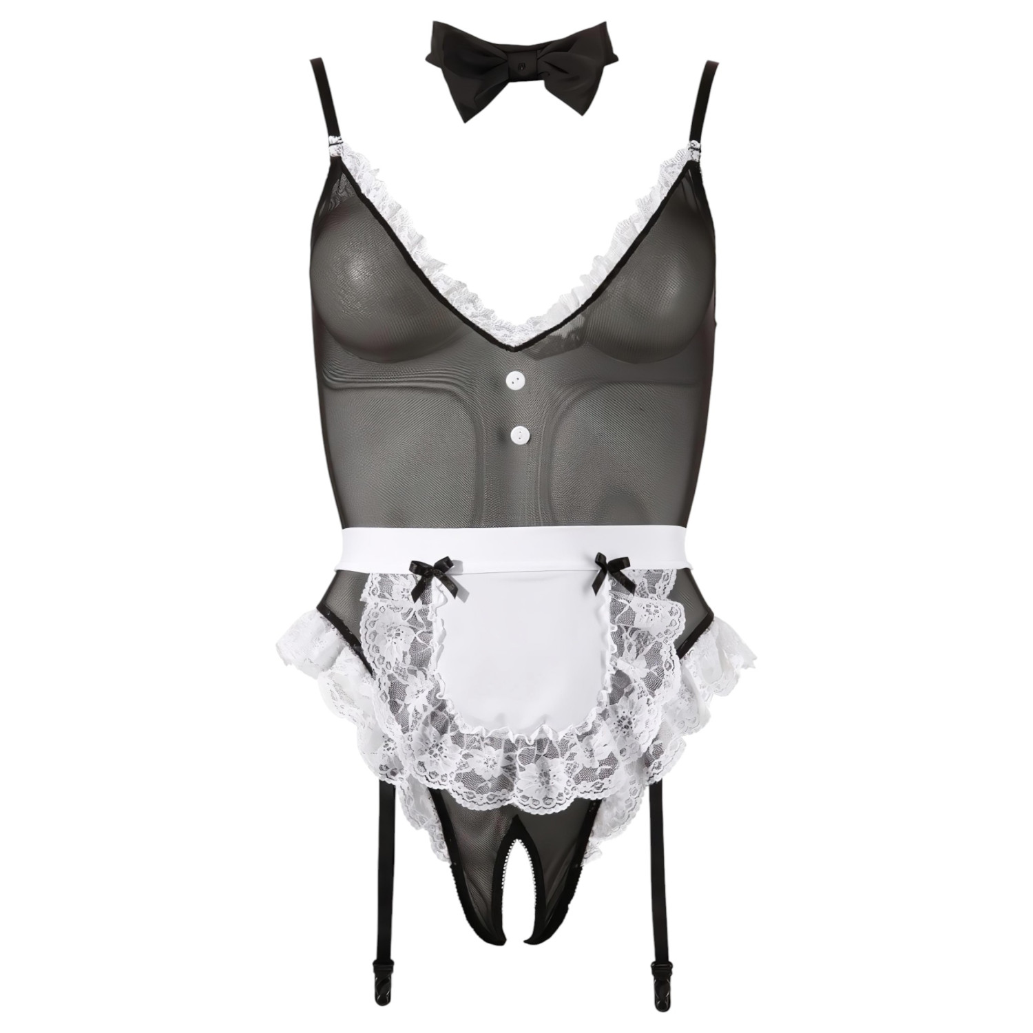 • 1x schwarzer, transparenter Dienstmädchen-Body
