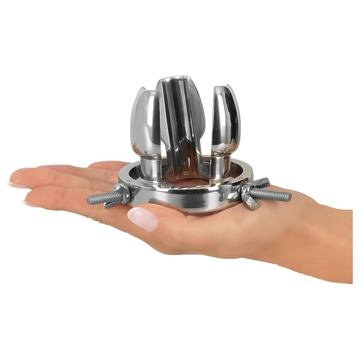 Im geschlossenen Zustand langsam einführen - ein ausgiebiges Vorspiel wird empfohlen, damit es leichter hineingleitet. Wenn ihr bereit seid, könnt ihr langsam die Muttern aufdrehen - entweder selbst oder dein Partner übernimmt das.