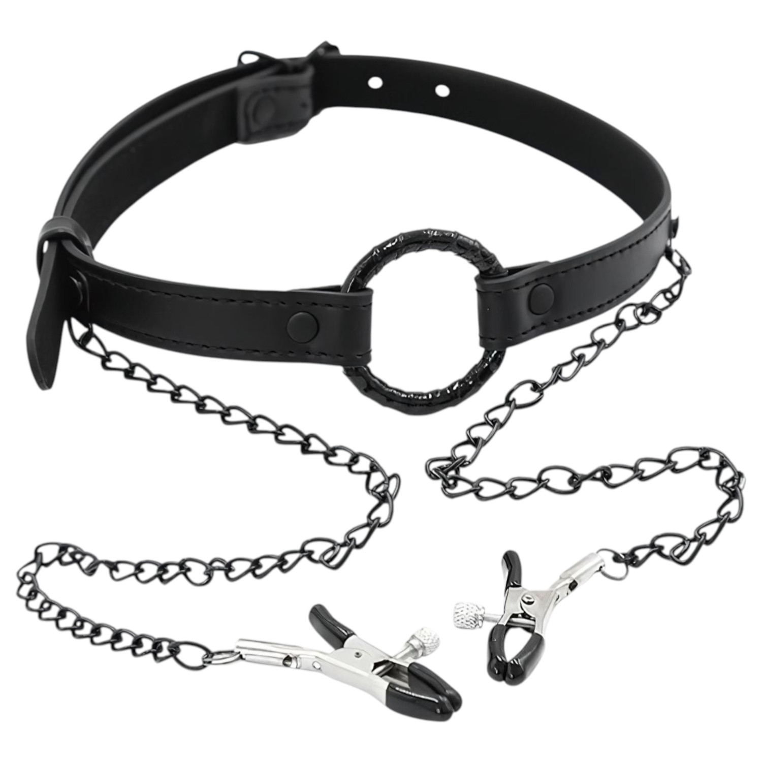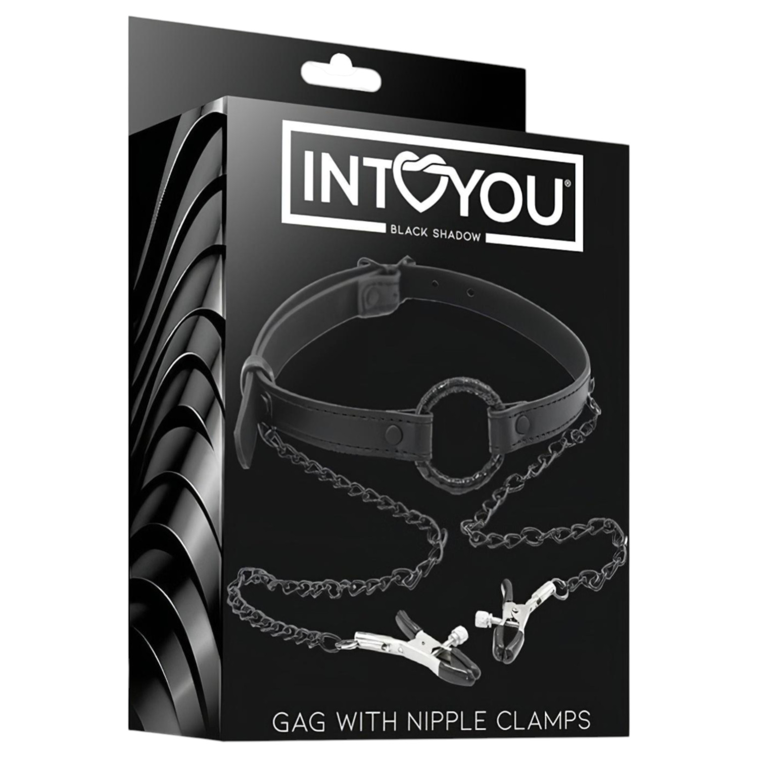 INTOYOU - Mundknebel mit Brustwarzenklemmen (schwarz)