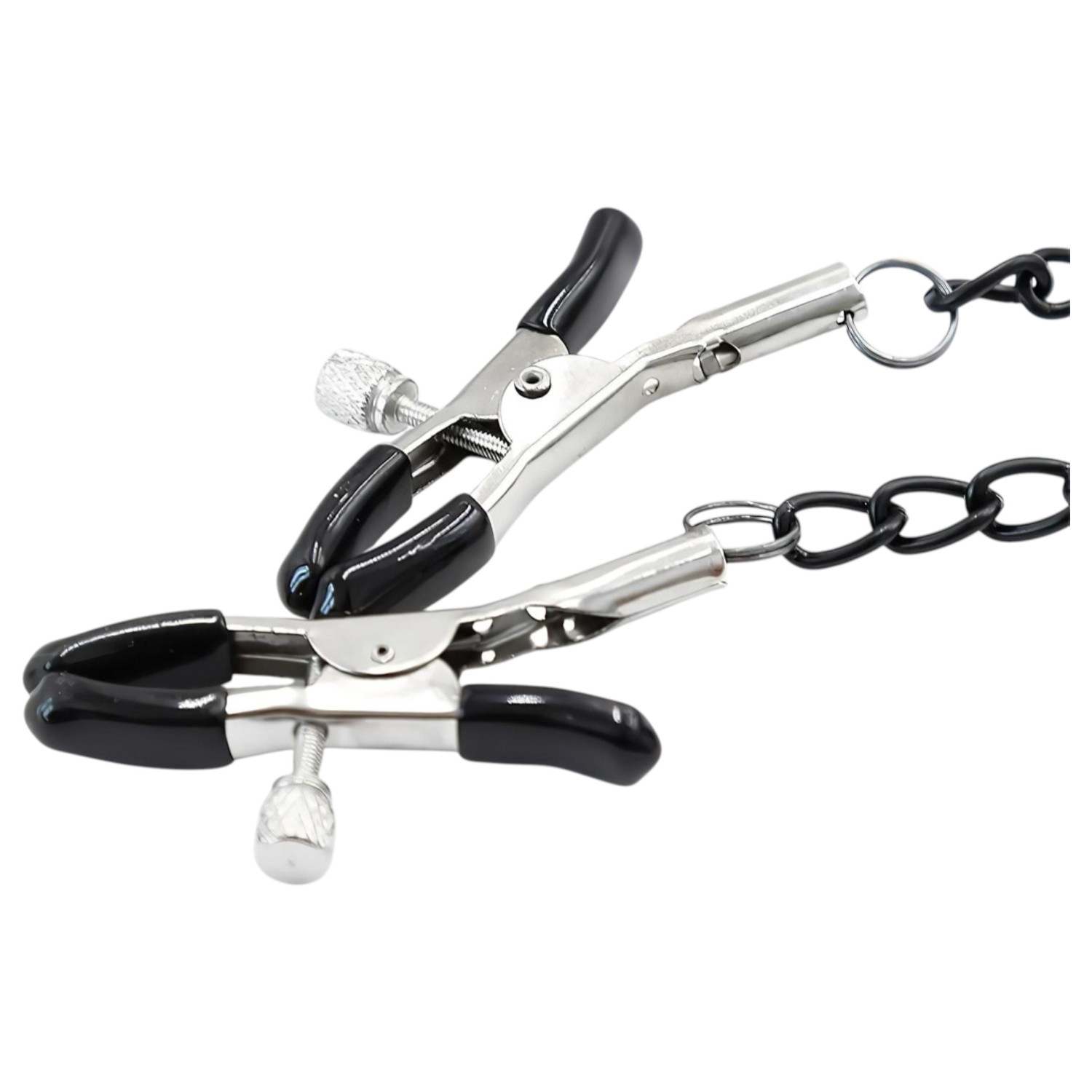 • 2 Stück verstellbare Brustwarzenklemmen mit Verbindungskabel