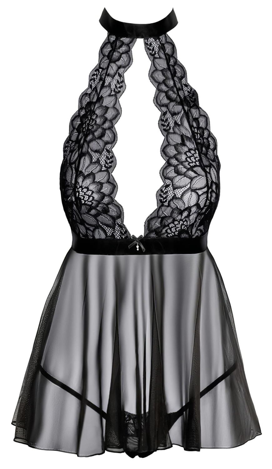 Sinnliches Babydoll-Set mit Nackenband aus transparenter Spitze - perfekt, um deine weiblichen Reize zu betonen!