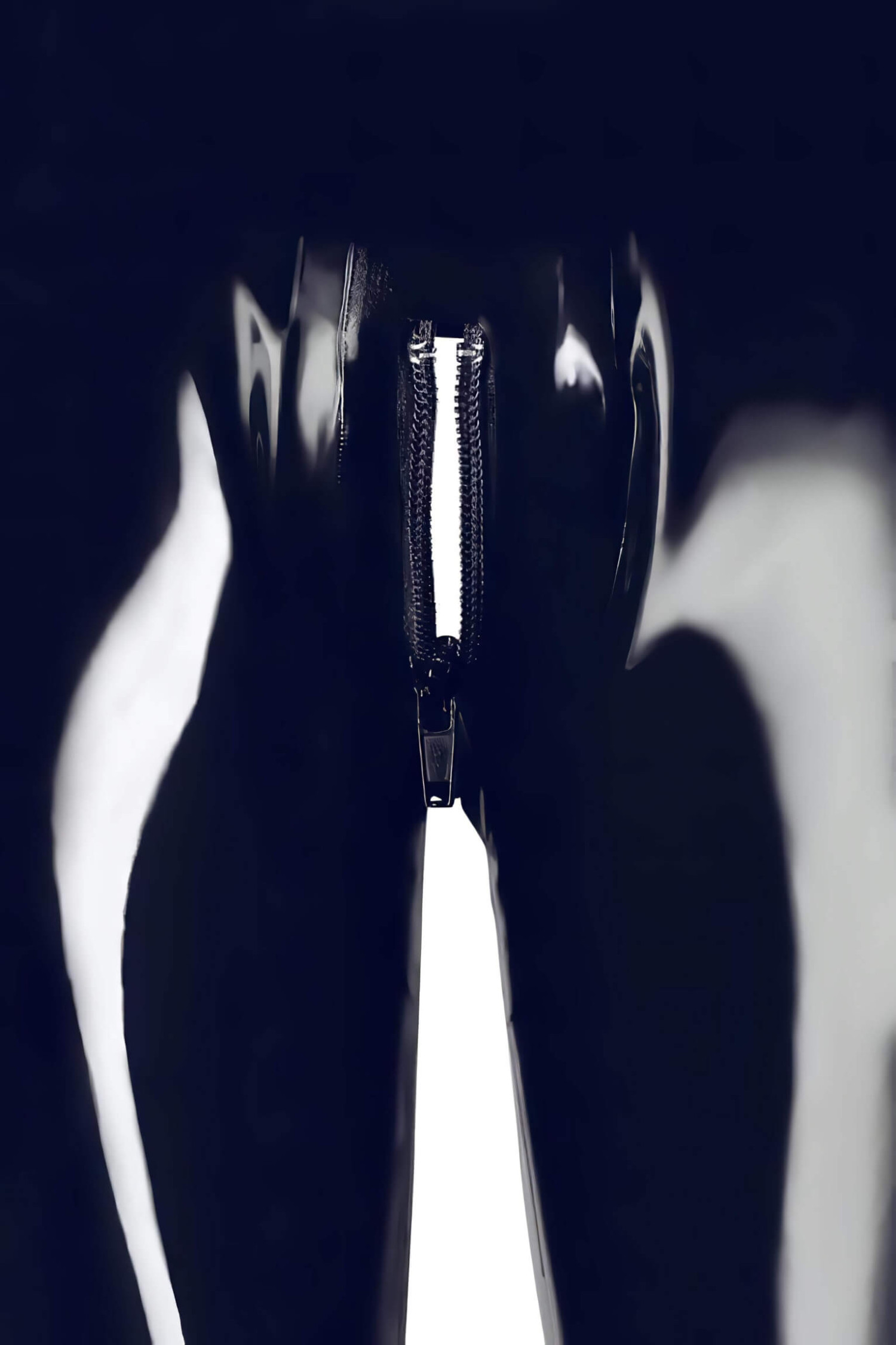 • 1 schwarze Latex-Langhose mit Zwei-Wege-Reißverschluss und matter Oberfläche.