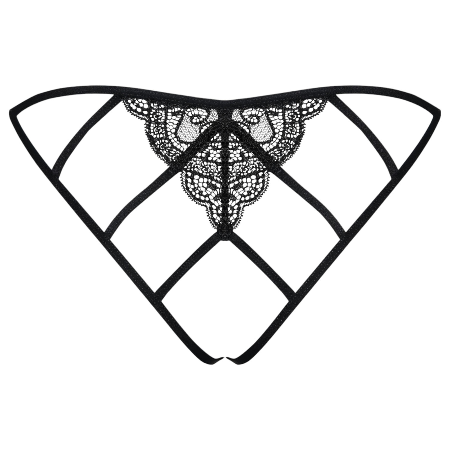Obsessive Miamor - Netzoffener Spitzen-Slip (Schwarz) - L/XL