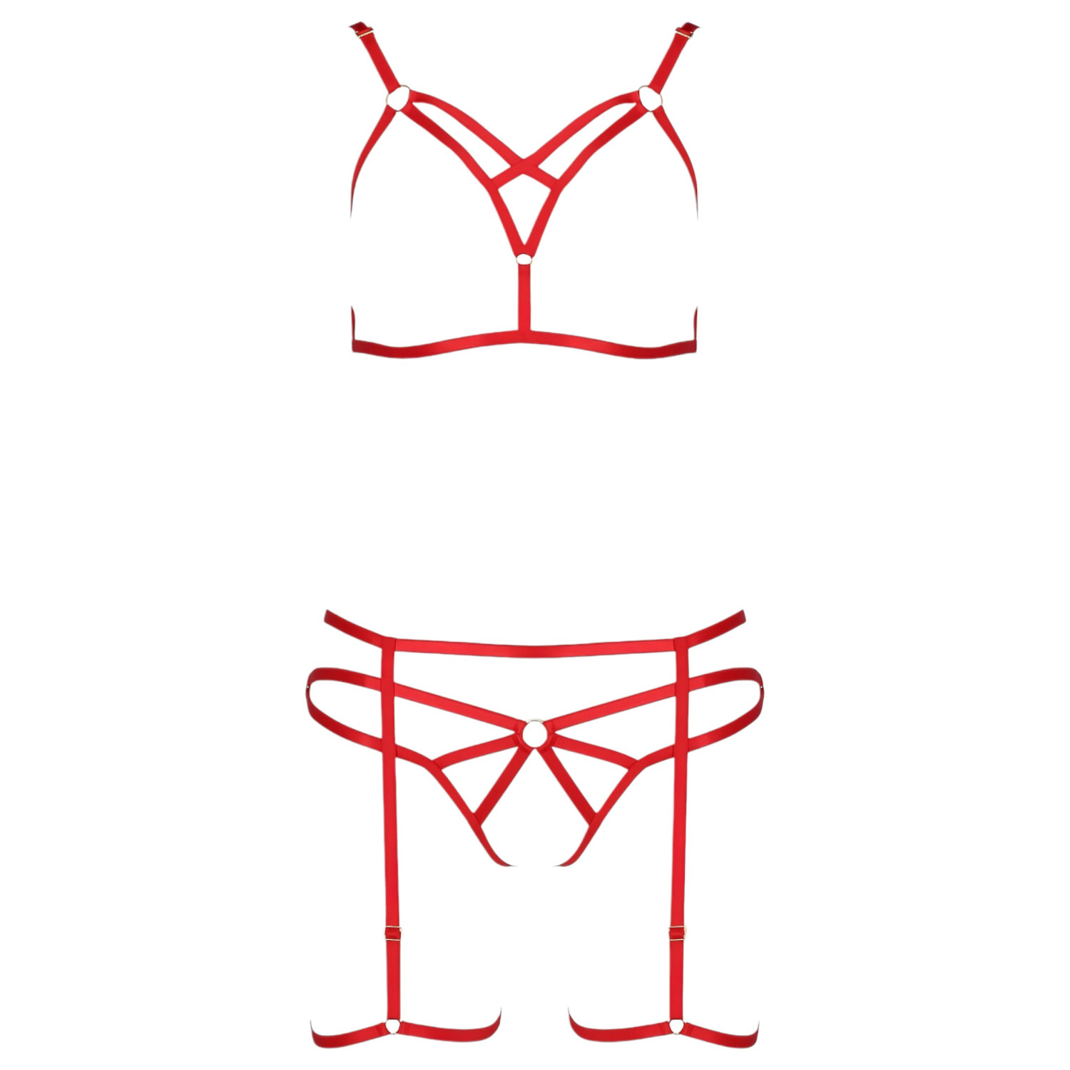 Passion Magali - 3-teiliges, verführerisches Körpergeschirr-Set (rot)