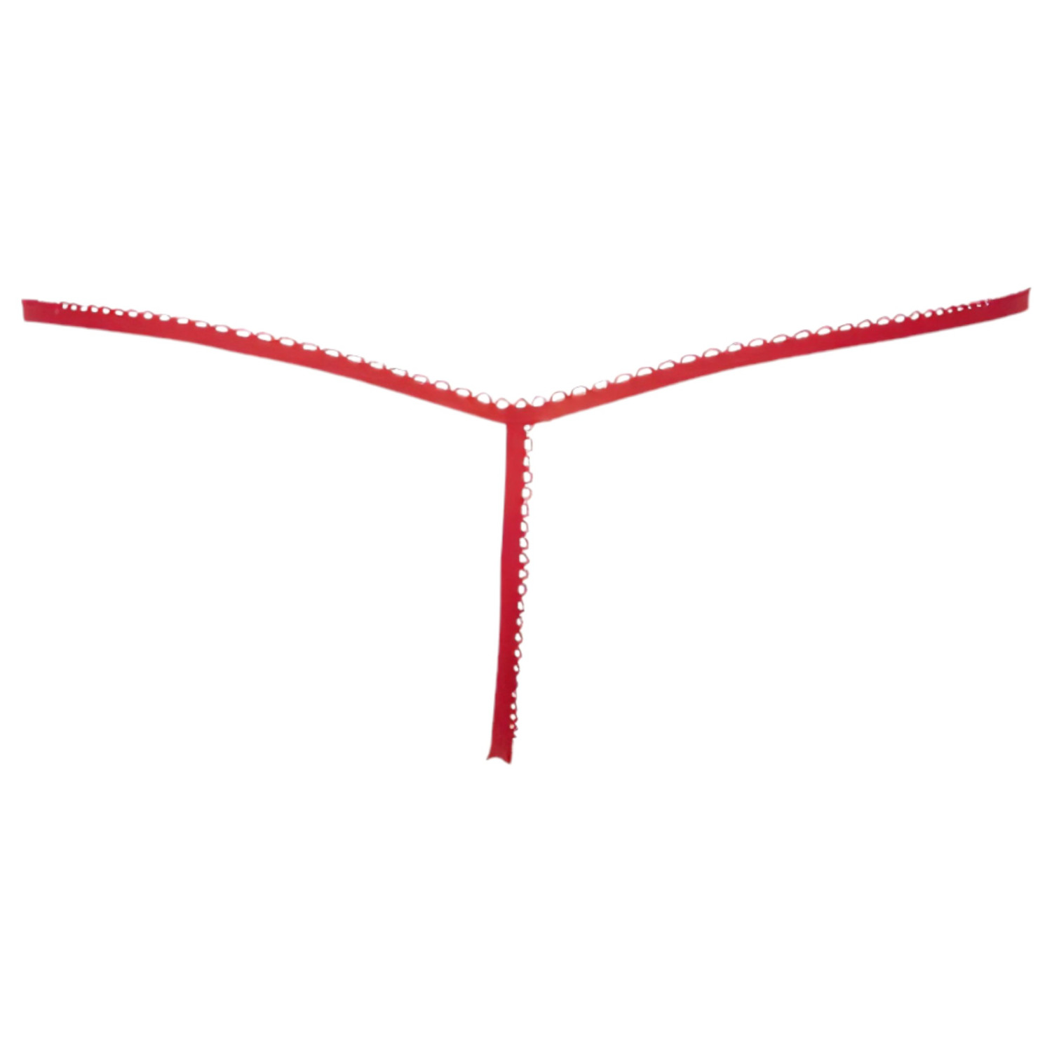 Weihnachtlicher, roter Metallic-String - verziert mit weichen, weißen Federn - das perfekte Accessoire für verführerische Festtage!